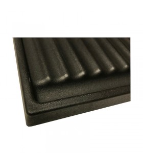 Αυτή η πλάκα, από βαρέως τύπου μαντέμι, είναι σχεδιασμένη για να λειτουργεί και από τις δύο πλευρές της. Η λεία πλευρά της είναι κατάλληλη για τσιγάρισμα ενώ η ραβδωτή, για ψήσιμο. Χάρη στις 2 όψεις της, σας επιτρέπει να ψήσετε διάφορα φαγητά, όπως κρέατα, λαχανικά, μανιτάρια, αυγά μάτια ή ομελέτα, λουκάνικα, σολομό, φέτες ψαριού, μπέικον και πολλά άλλα!