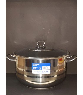 Η ΚΑΤΣΑΡΟΛΑ ΜΑΡΜΙΤΑ με Διπλό Πάτο Τύπου Σάντουιτς 16,5 λίτρων είναι άριστης ποιότητας κατασκευή.και Είναι κατάλληλη για όλων των ειδών τα τρόφιμα. Κατασκευασμένη από ανοξείδωτο ατσάλι 18/10 (AISI 304 BA)και με μονοκόμματη κατασκευή χωρίς κολλήσεις και ραφές πουθενά. Ο δεύτερος πάτος της είναι κατασκευασμένος από τρεις στρώσεις. Η πρώτη στρώση είναι ανοξείδωτο ατσάλι, η δεύτερη είναι αλουμινένια και η τρίτη πάλι από ανοξείδωτο ατσάλι. Η δημιουργία του πάτου αυτού εχει σαν αποτελεσμα την δυνατότητα χρήσης επαγωγικών εστιών,βελτιστοποίηση στην απορρόφηση θερμότητας ιδίως με χρήση υγραερίου ή φυσικού αερίου, και το ποιο σημαντικο ειναι οτι μεταδίδει την θερμότητα ομοιόμορφα σε όλο το ύψος και σώμα της κατσαρολας και κατ’ επέκταση, ομοιόμορφα σε όλο το περιεχόμενό του,με αποτελεσμα να εχουμε ενα εξαιρετικα νοστιμο φαγητο και φυσικα βοηθάνε στο να μην κολλάει το περιεχόμενο στον πάτο εύκολα. Και εδώ βέβαια, όπως και σε όλα τα ανοξείδωτα καζάνια, η ανάδευση (ιδίως για γάλα) είναι απαραίτητη.. Η κατσαρολα δίνεται με εγγύηση ζωής. Καταλληλη να βράσετε γάλα, μέλι, σάλτσες, μαρμελάδες, σούπες, κεφάλια, πατσάδες, σιρόπια και οτιδήποτε άλλο τρόφιμο επιθυμείτε. Κατάλληλη να θερμανθεί πάνω από Ξύλα, Ξυλοκάρβουνα, Υγραέριο και Φυσικό Αέριο, Ηλεκτρικές εστίες (Επαγωγικές – Κεραμικές – Μαντεμένιες). Πριν την τοποθετήσετε στην φωτιά, να έχετε τοποθετήσει το υγρό που θέλετε να βράσετε στο εσωτερικό του. Χρησιμοποιήστε οικιακά απορρυπαντικά (πχ πιάτων) με χλιαρό νερό. Αποφυγετε να χρησιμοποιείτε σύρμα. Καλό είναι επίσης να στεγνώσετε καλά την μαρμιτα μετά το πλύσιμο.